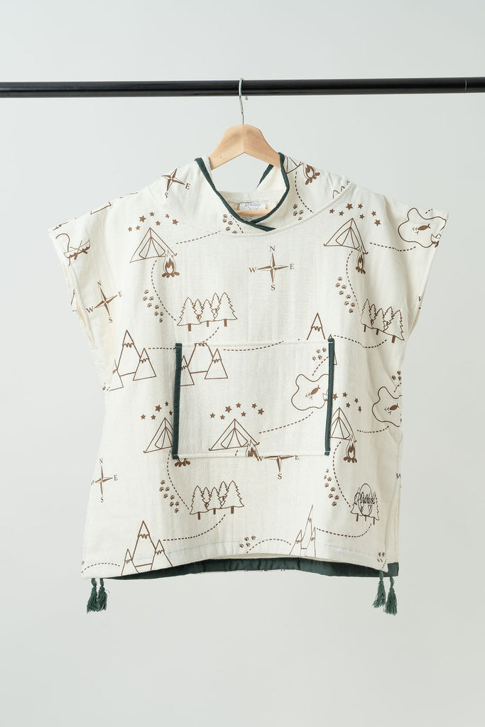 Each Kindhood poncho is made from 70% sustainable bamboo fiber and 30% cotton blend. Ponchos feature an ultra-soft, absorbent, and quick-drying terrycloth interior; a hood for warmth and protection; and a pouch pocket for your littles to keep their hands warm, snacks safe, and seashell collections secure.